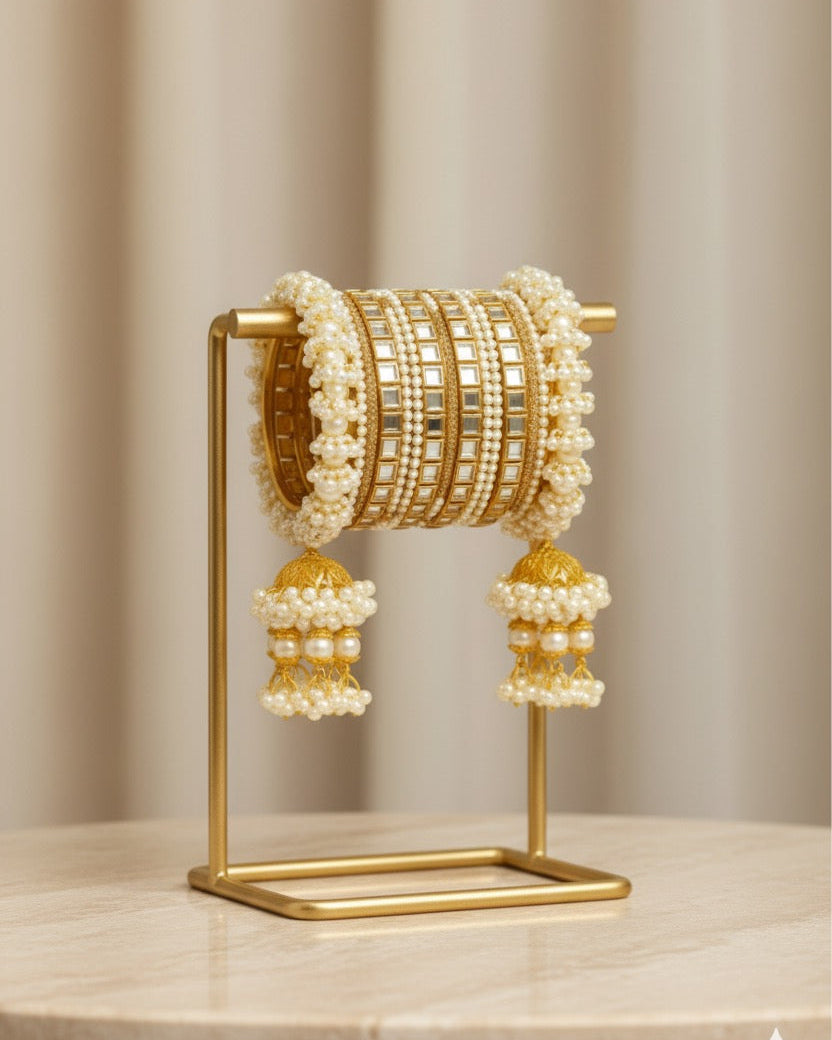 Combining soft champagne tones with golden finesse, this bangle set redefines understated luxury. Each piece is handcrafted for durability and style.