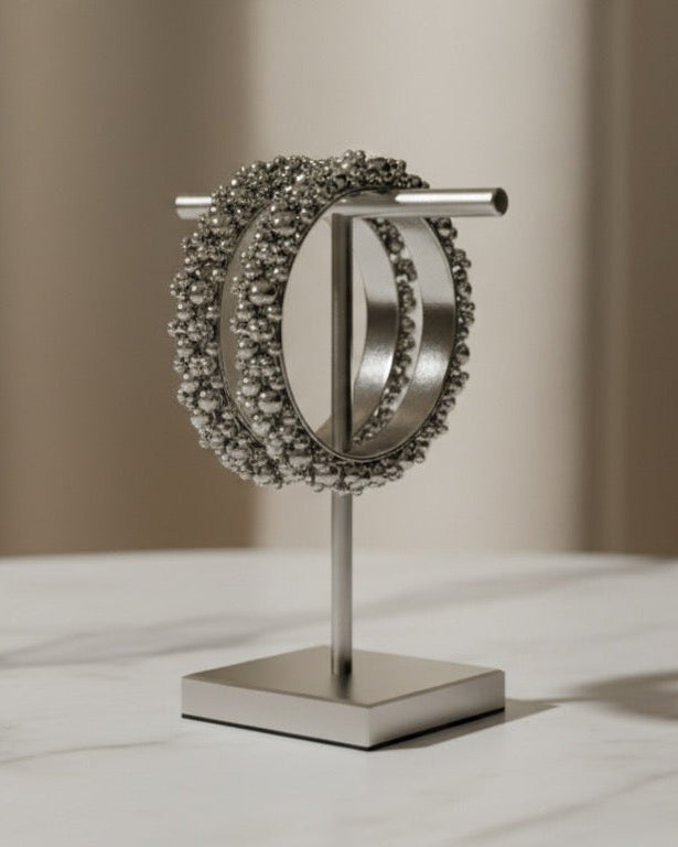 A refreshing combination of mint-green hues and soft pearls gives this set a calm, elegant appeal. Made from high-quality material with a gentle polish for a clean finish and comfortable fit. Only two bangles included in it.